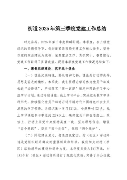 / 【七哥公文】2025年:街道2025年第三季度党建工作总结+更多免费公文+VX:QiGeGongWen2024