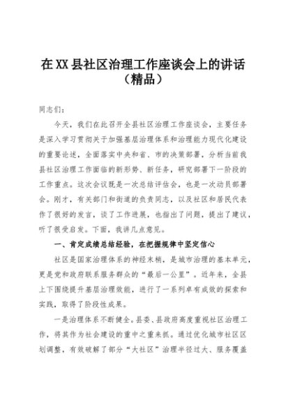 / 【七哥公文】2025年:在XX县社区治理工作座谈会上的讲话(精品)+更多免费公文+VX:QiGeGongWen2024