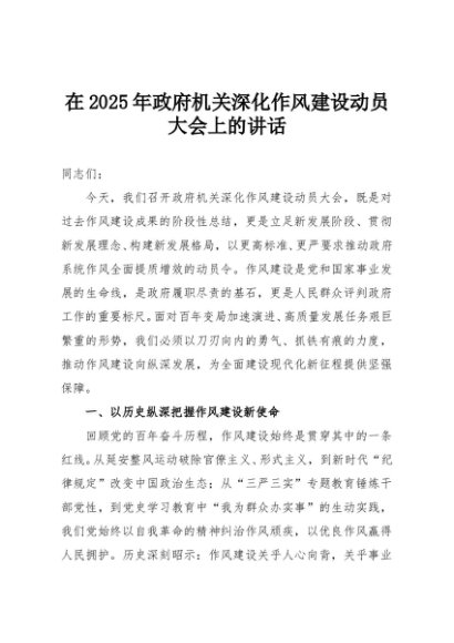 / 【七哥公文】2025年:在2025年政府机关深化作风建设动员大会上的讲话+更多免费公文+VX:QiGeGongWen2024