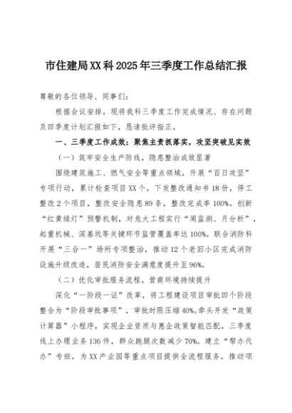 / 【七哥公文】2025年:市住建局XX科2025年三季度工作总结汇报+更多免费公文+VX:QiGeGongWen2024