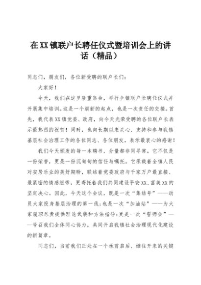 / 【七哥公文】2025年:在XX镇联户长聘任仪式暨培训会上的讲话(精品)+更多免费公文+VX:QiGeGongWen2024