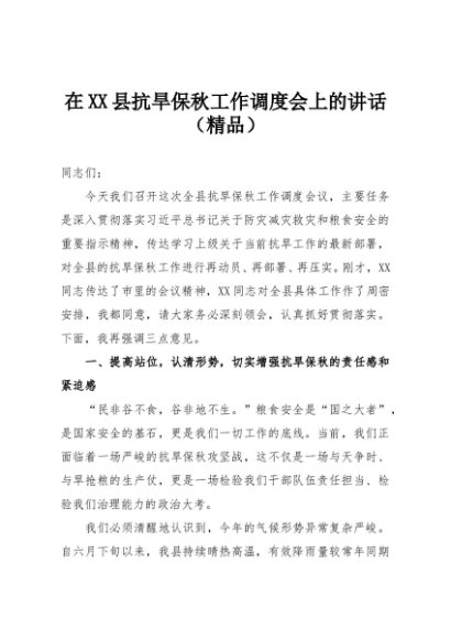 / 【七哥公文】2025年:在XX县抗旱保秋工作调度会上的讲话(精品)+更多免费公文+VX:QiGeGongWen2024