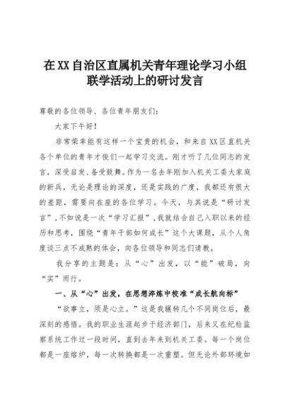 【七哥公文】2025年:在XX自治区直属机关青年理论学习小组联学活动上的研讨发言+更多免费公文+VX:QiGeGongWen2024
