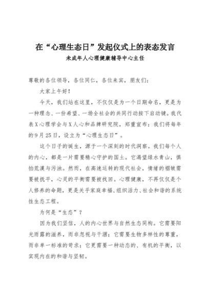 / 【七哥公文】2025年:在“心理生态日”发起仪式上的表态发言+更多免费公文+VX:QiGeGongWen2024