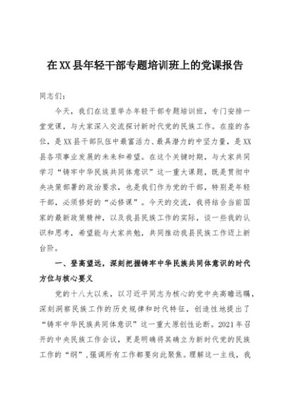 / 【七哥公文】2025年:在XX县年轻干部专题培训班上的党课报告+更多免费公文+VX:QiGeGongWen2024