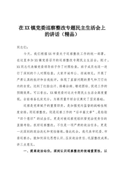 / 【七哥公文】2025年:在XX镇党委巡察整改专题民主生活会上的讲话(精品)+更多免费公文+VX:QiGeGongWen2024