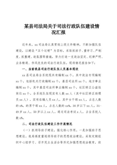 / 【七哥公文】2025年:某县司法局关于司法行政队伍建设情况汇报+更多免费公文+VX:QiGeGongWen2024