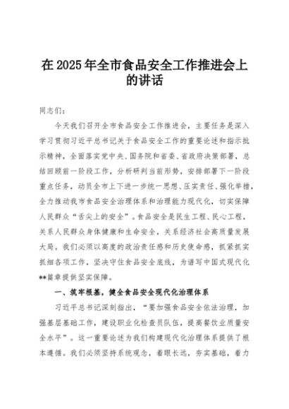 / 【七哥公文】2025年:在2025年全市食品安全工作推进会上的讲话+更多免费公文+VX:QiGeGongWen2024