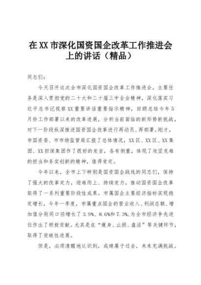/ 【七哥公文】2025年:在XX市深化国资国企改革工作推进会上的讲话(精品)+更多免费公文+VX:QiGeGongWen2024