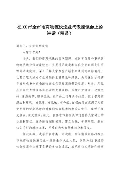 【七哥公文】2025年:在XX市全市电商物流快递业代表座谈会上的讲话(精品)+更多免费公文+VX:QiGeGongWen2024
