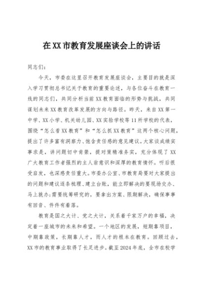 / 【七哥公文】2025年:在XX市教育发展座谈会上的讲话+更多免费公文+VX:QiGeGongWen2024