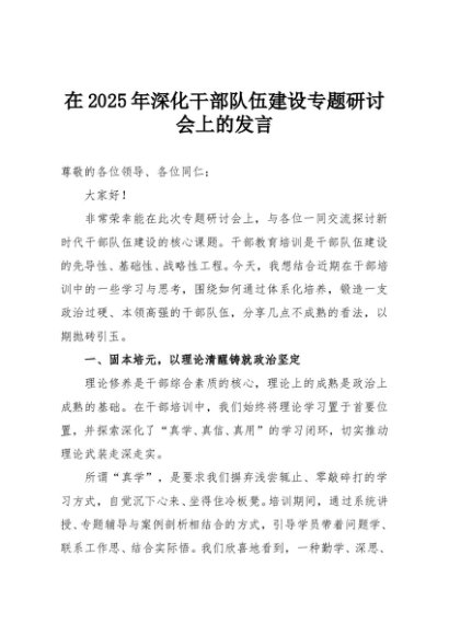 / 【七哥公文】2025年:在2025年深化干部队伍建设专题研讨会上的发言+更多免费公文+VX:QiGeGongWen2024