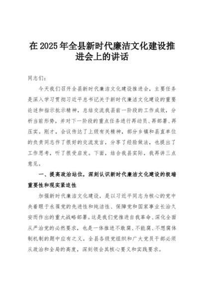 / 【七哥公文】2025年:在2025年全县新时代廉洁文化建设推进会上的讲话+更多免费公文+VX:QiGeGongWen2024