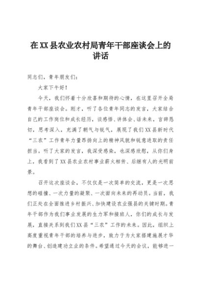 / 【七哥公文】2025年:在XX县农业农村局青年干部座谈会上的讲话+更多免费公文+VX:QiGeGongWen2024