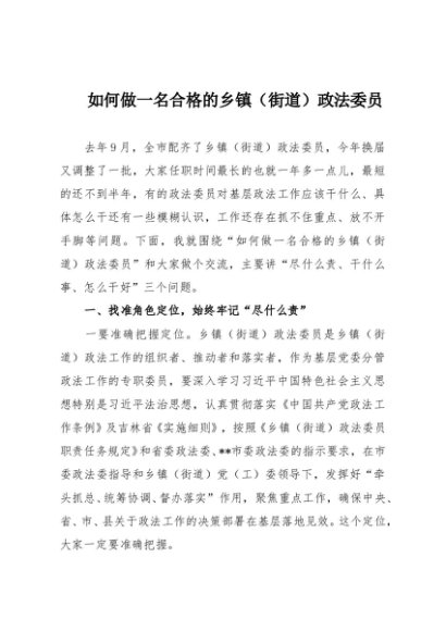 / 【七哥公文】2025年:如何做一名合格的乡镇(街道)政法委员+更多免费公文+VX:QiGeGongWen2024