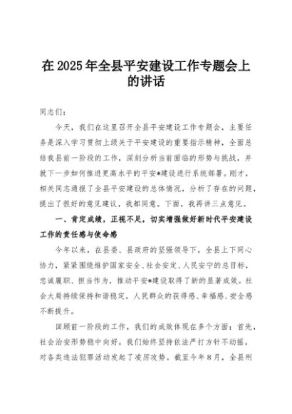 / 【七哥公文】2025年:在2025年全县平安建设工作专题会上的讲话+更多免费公文+VX:QiGeGongWen2024