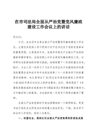 【七哥公文】2025年:在市司法局全面从严治党暨党风廉政建设工作会议上的讲话+更多免费公文+VX:QiGeGongWen2024