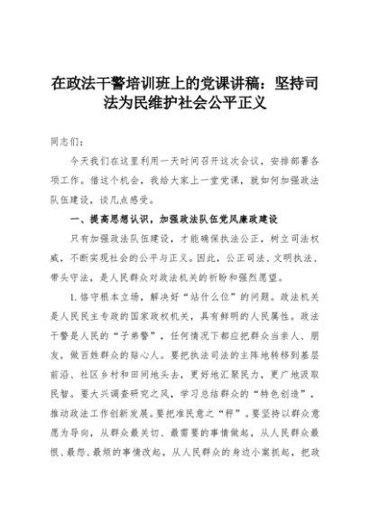 【七哥公文】2025年:在政法干警培训班上的党课讲稿:坚持司法为民维护社会公平正义+更多免费公文+VX:QiGeGongWen2024