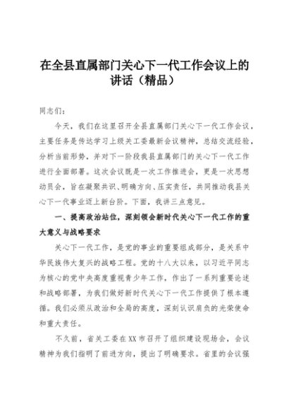 / 【七哥公文】2025年:在全县直属部门关心下一代工作会议上的讲话(精品)+更多免费公文+VX:QiGeGongWen2024