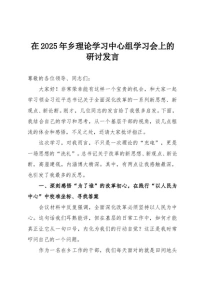 / 【七哥公文】2025年:在2025年乡理论学习中心组学习会上的研讨发言+更多免费公文+VX:QiGeGongWen2024