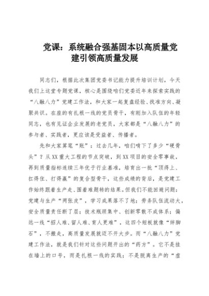 / 【七哥公文】2025年:党课:系统融合强基固本以高质量党建引领高质量发展+更多免费公文+VX:QiGeGongWen2024