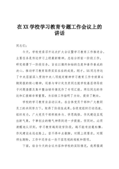 / 【七哥公文】2025年:在XX学校学习教育专题工作会议上的讲话+更多免费公文+VX:QiGeGongWen2024