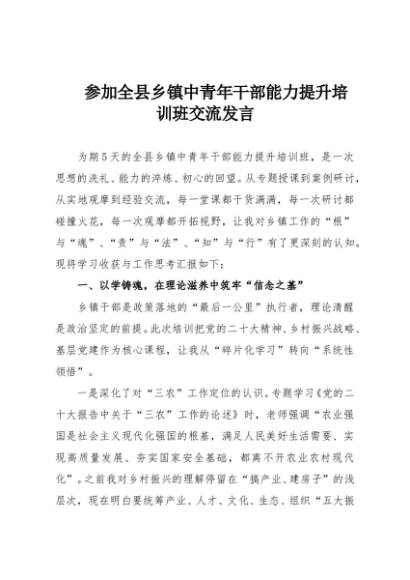 / 【七哥公文】2025年:参加全县乡镇中青年干部能力提升培训班交流发言+更多免费公文+VX:QiGeGongWen2024