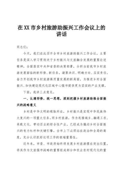 / 【七哥公文】2025年:在XX市乡村旅游助振兴工作会议上的讲话+更多免费公文+VX:QiGeGongWen2024