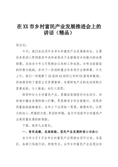 / 【七哥公文】2025年:在XX市乡村富民产业发展推进会上的讲话(精品)+更多免费公文+VX:QiGeGongWen2024