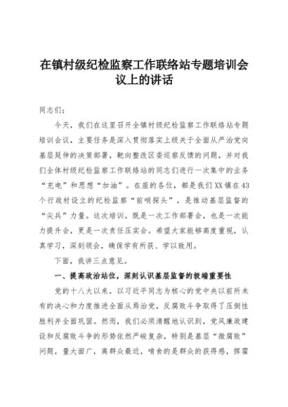 / 【七哥公文】2025年:在镇村级纪检监察工作联络站专题培训会议上的讲话+更多免费公文+VX:QiGeGongWen2024