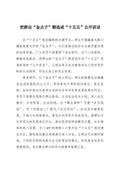 / 【七哥公文】2025年:把群众“金点子”锻造成“十五五”公开讲话+更多免费公文+VX:QiGeGongWen2024
