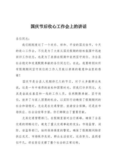 / 【七哥公文】2025年:国庆节后收心工作会上的讲话+更多免费公文+VX:QiGeGongWen2024