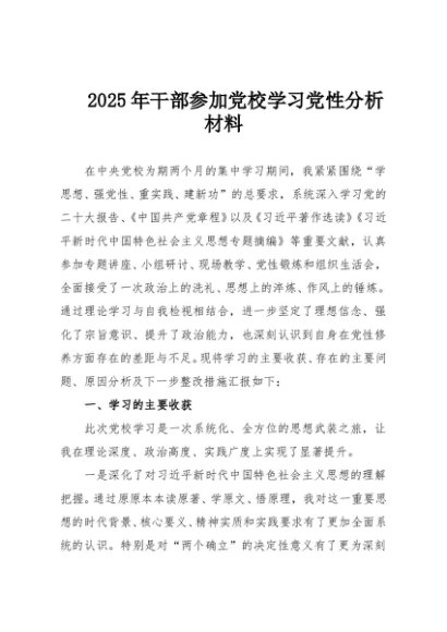/ 【七哥公文】2025年:2025年干部参加党校学习党性分析材料+更多免费公文+VX:QiGeGongWen2024