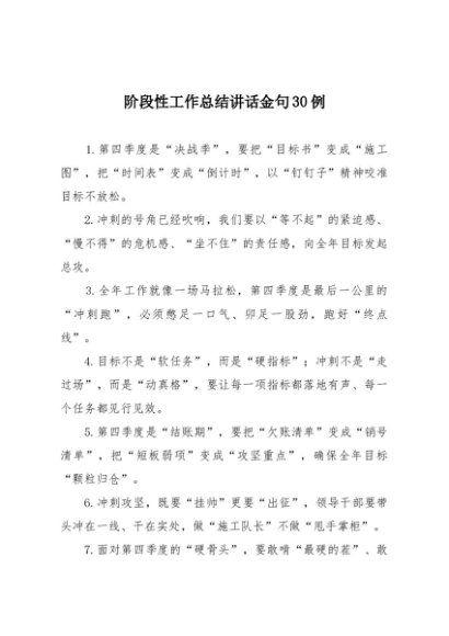 / 【七哥公文】2025年:阶段性工作总结讲话金句30例+更多免费公文+VX:QiGeGongWen2024