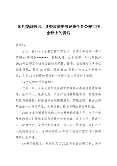 【七哥公文】2025年:某县委副书记、县委政法委书记在全县公安工作会议上的讲话+更多免费公文+VX:QiGeGongWen2024