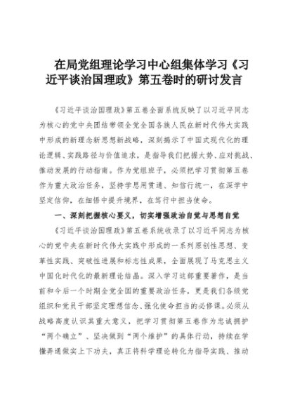 【七哥公文】2025年:在局党组理论学习中心组集体学习《习近平谈治国理政》第五卷时的研讨发言+更多免费公文+VX:QiGeGongWen2024