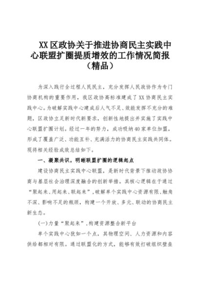 【七哥公文】2025年:XX区政协关于推进协商民主实践中心联盟扩圈提质增效的工作情况简报(精品)+更多免费公文+VX:QiGeGongWen2024
