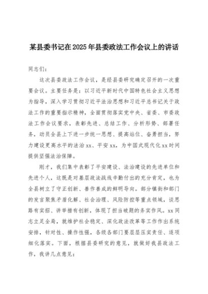 / 【七哥公文】2025年:某县委书记在2025年县委政法工作会议上的讲话+更多免费公文+VX:QiGeGongWen2024