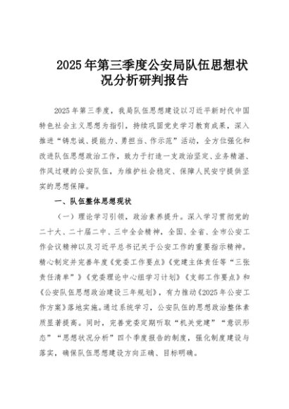 / 【七哥公文】2025年:2025年第三季度公安局队伍思想状况分析研判报告+更多免费公文+VX:QiGeGongWen2024