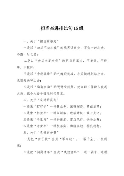 / 【七哥公文】2025年:担当奋进排比句15组+更多免费公文+VX:QiGeGongWen2024