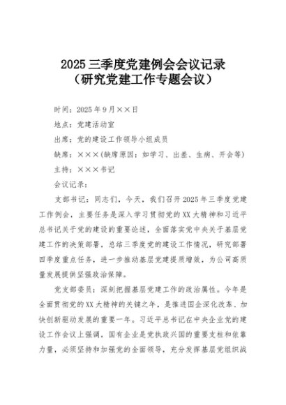 / 【七哥公文】2025年:2025三季度党建例会会议记录+更多免费公文+VX:QiGeGongWen2024