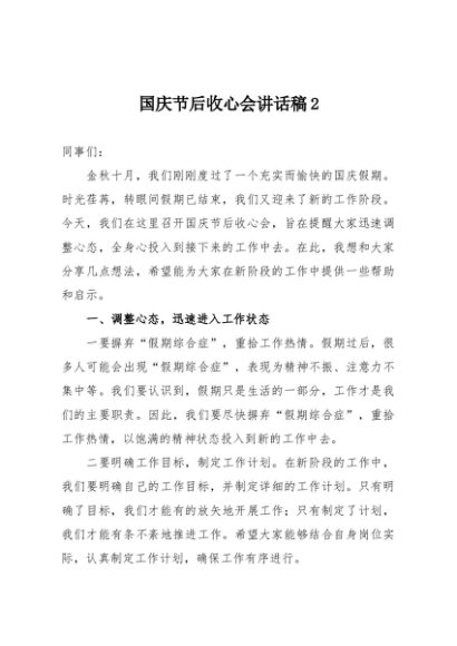 / 【七哥公文】2025年:国庆节后收心会讲话稿2+更多免费公文+VX:QiGeGongWen2024