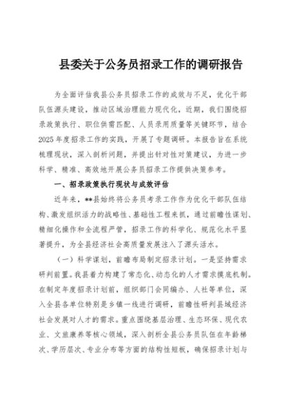 / 【七哥公文】2025年:县委关于公务员招录工作的调研报告+更多免费公文+VX:QiGeGongWen2024