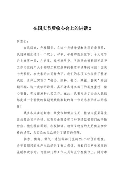 / 【七哥公文】2025年:在国庆节后收心会上的讲话2+更多免费公文+VX:QiGeGongWen2024
