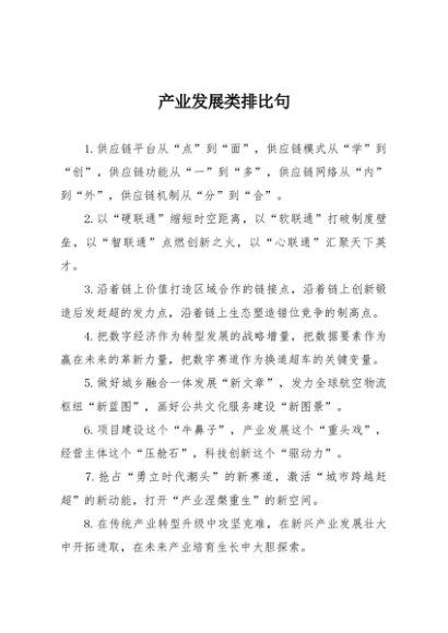 【七哥公文】2025年:产业发展类排比句+更多免费公文+VX:QiGeGongWen2024