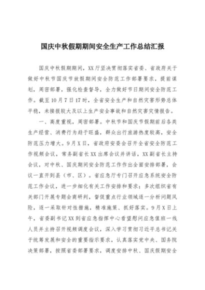 / 【七哥公文】2025年:国庆中秋假期期间安全生产工作总结汇报+更多免费公文+VX:QiGeGongWen2024
