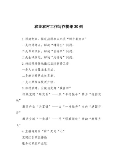 【七哥公文】2025年:农业农村工作写作提纲30例+更多免费公文+VX:QiGeGongWen2024