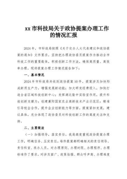 / 【七哥公文】2025年:xx市科技局关于政协提案办理工作的情况汇报+更多免费公文+VX:QiGeGongWen2024