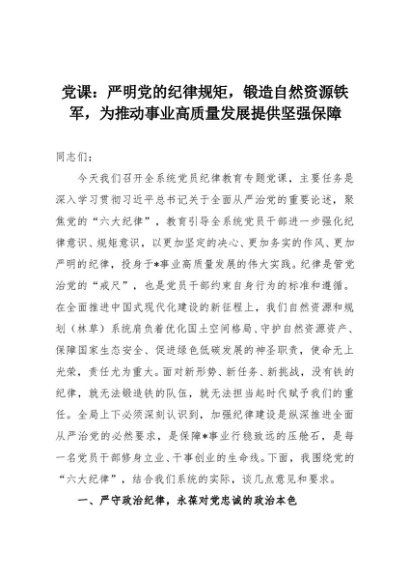 【七哥公文】2025年:党课:严明党的纪律规矩,锻造自然资源铁军,为推动事业高质量发展提供坚强保障+更多免费公文+VX:QiGeGongWen2024