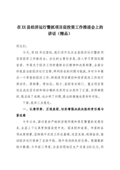 【七哥公文】2025年:在XX县经济运行暨抓项目促投资工作推进会上的讲话(精品)+更多免费公文+VX:QiGeGongWen2024